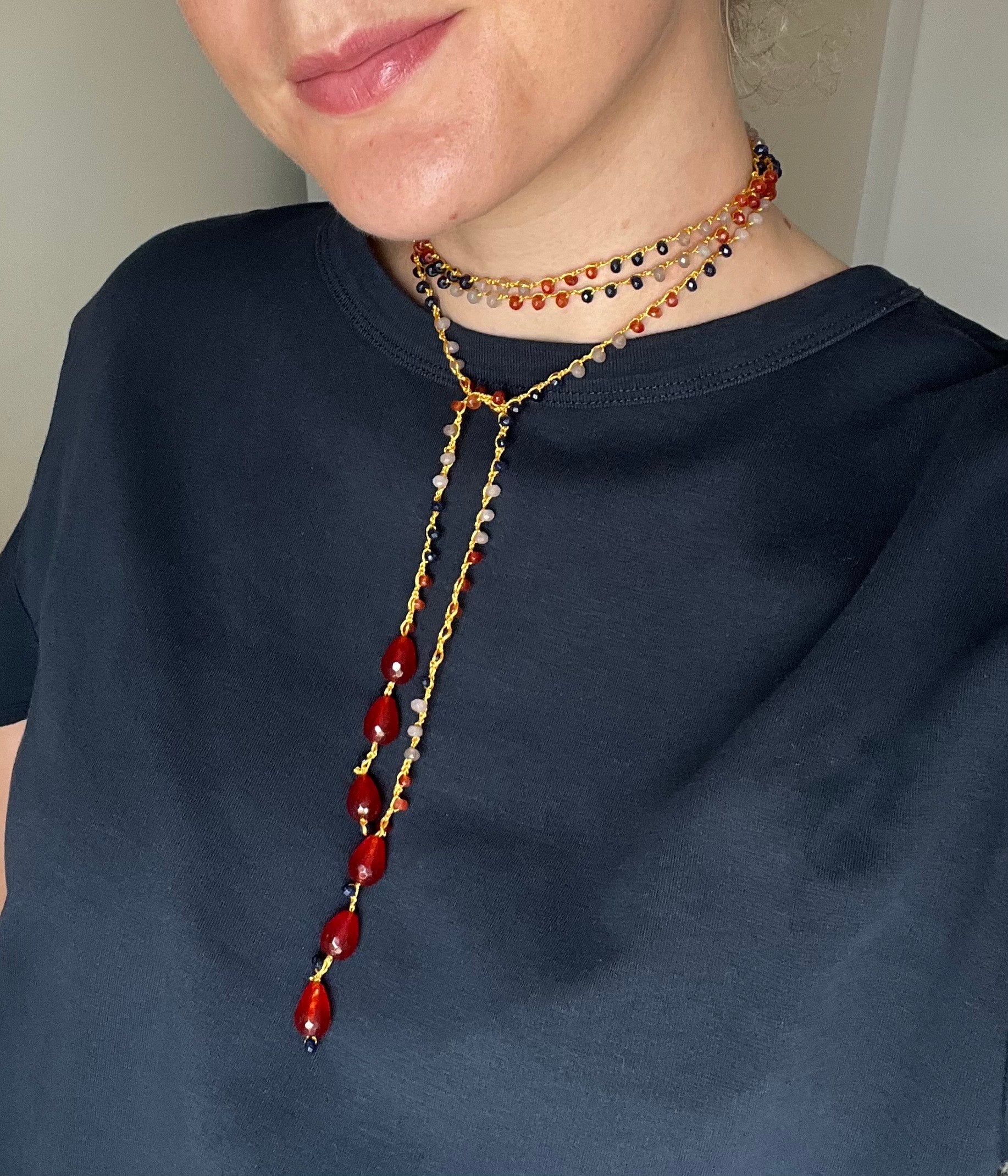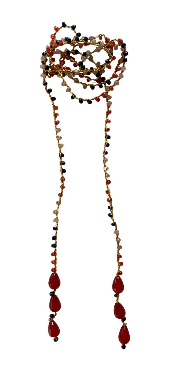 Largo 138cm. Multiposición, puede llevarse largo, corto dándole varias vueltas, abierto con los extremos colgando, etc.
